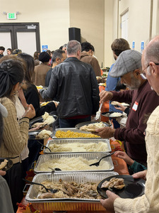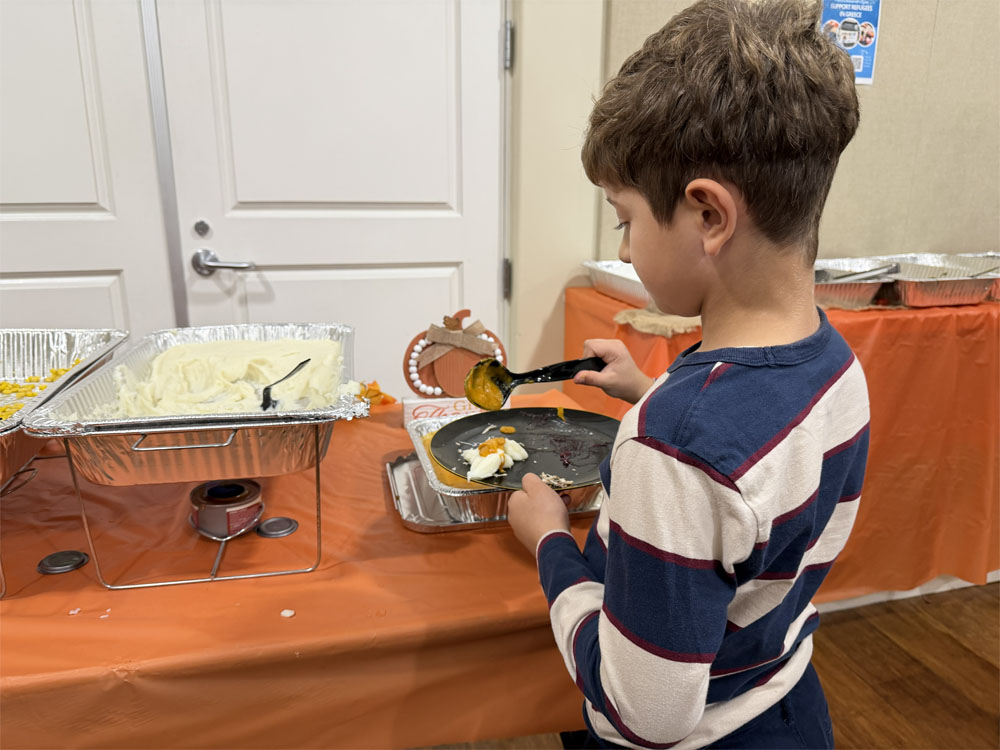 Guests enjoyed a wonderful traditional Thanksgiving dinner, featuring roasted turkey, rich gravy, cranberry sauce, mashed potatoes, warm apple cider, pumpkin pie, and other classic holiday favorites. The comforting flavors helped create a warm, festive atmosphere for all.