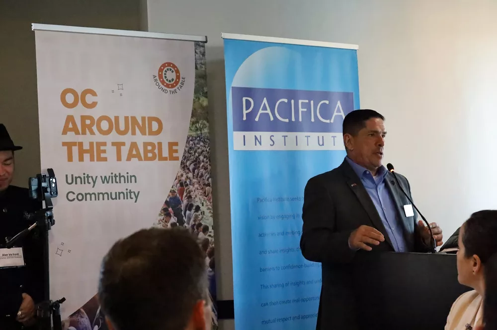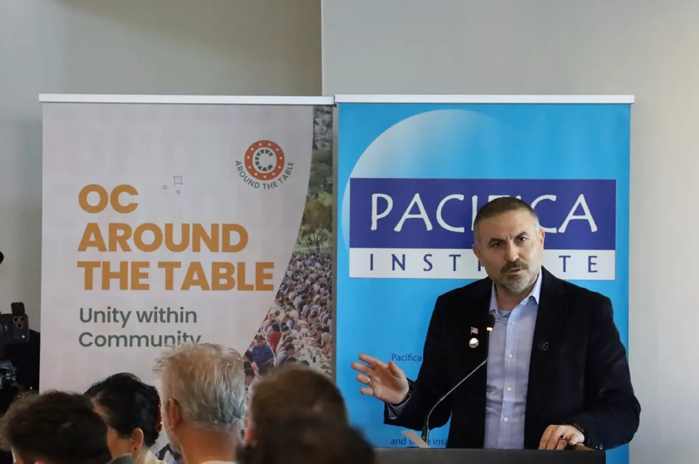 Pacifica Institute Executive Director Mustafa Ulukaya welcomed participants and highlighted Pacifica’s mission and community work, emphasizing that the Institute’s core goal is to bring people together across cultures, faiths, and backgrounds. He shared that OC Around the Table reflects that mission by creating a space where relationships grow and communities strengthen.