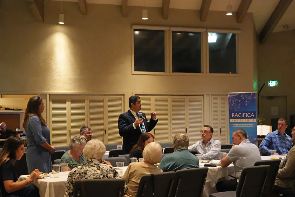 During the program, we also highlighted Orange County Around the Table (OCAT)—Pacifica Institute’s annual interfaith and intercultural initiative that brings diverse communities together through shared meals and conversation. Guests viewed the OCAT 2025 recap video, reflecting on last year’s powerful gatherings, and we shared information about the upcoming OCAT 2026 program and opportunities to participate.