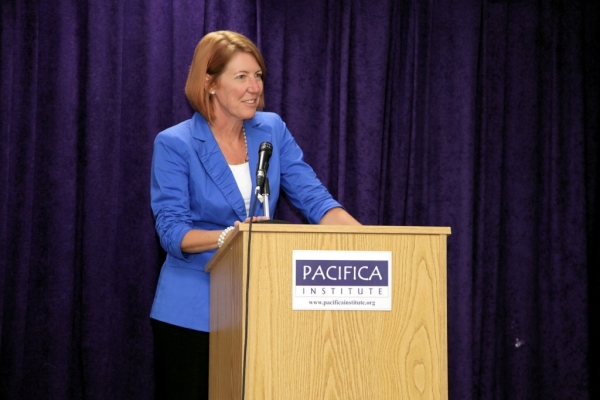 First, OC Sheriff Sandra Hutchens took to the stage. She started off by thanking Pacifica Institute for its work. She said that just like Pacifica Institute, “we too are trying to build bridges.” She continued, “In the law enforcement community we are always seeking to build bridges with all the cultures, all the great cultures that are represented in Orange County.” The Sheriff then introduced her accompanying staff members who work as her liaisons in the community.